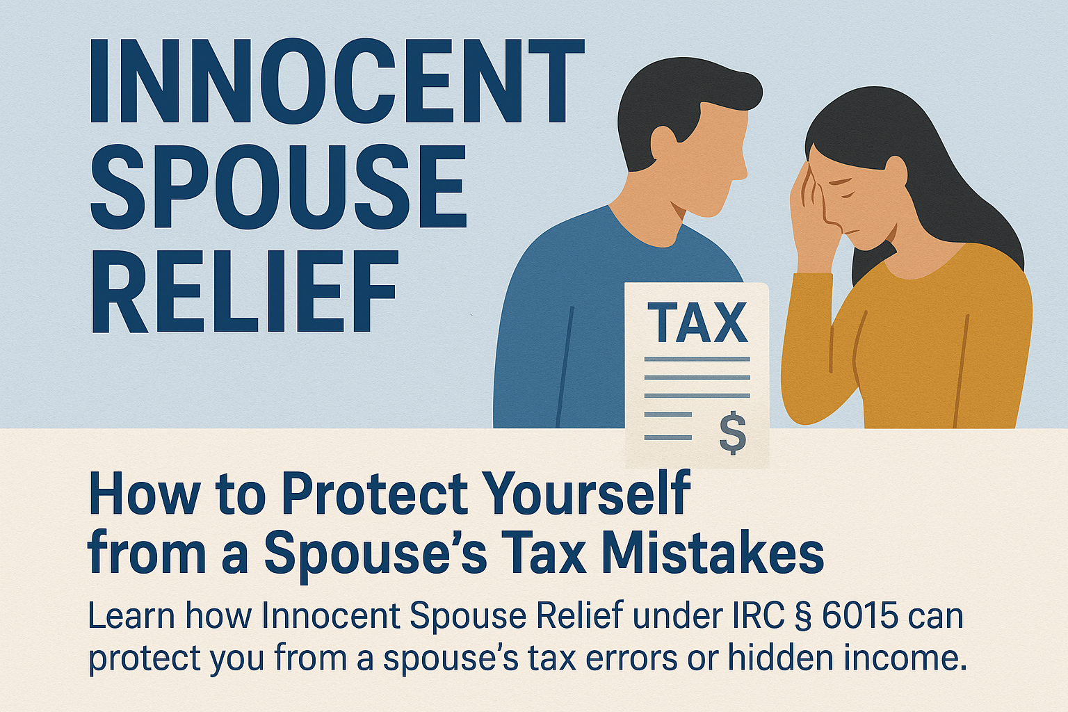 Learn how Innocent Spouse Relief under IRC § 6015 can protect you from a spouse’s tax errors or hidden income. Understand who qualifies, how abuse factors in, and how to file IRS Form 8857 to request relief from unfair tax debt.
